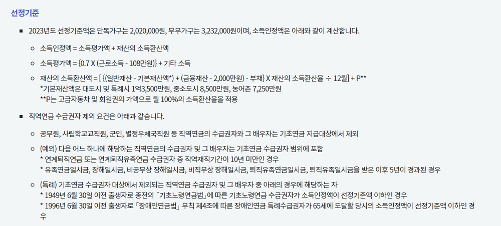 일부 예외적인 상황에서는 연계 퇴직 연금 그리고 연계 퇴직 유족 연금 수급권자 중 일정 조건을 충족하는 경우에만 기초 연금 수급권자 범위에 포함될 수 있는 점 참고하시길 바랍니다.